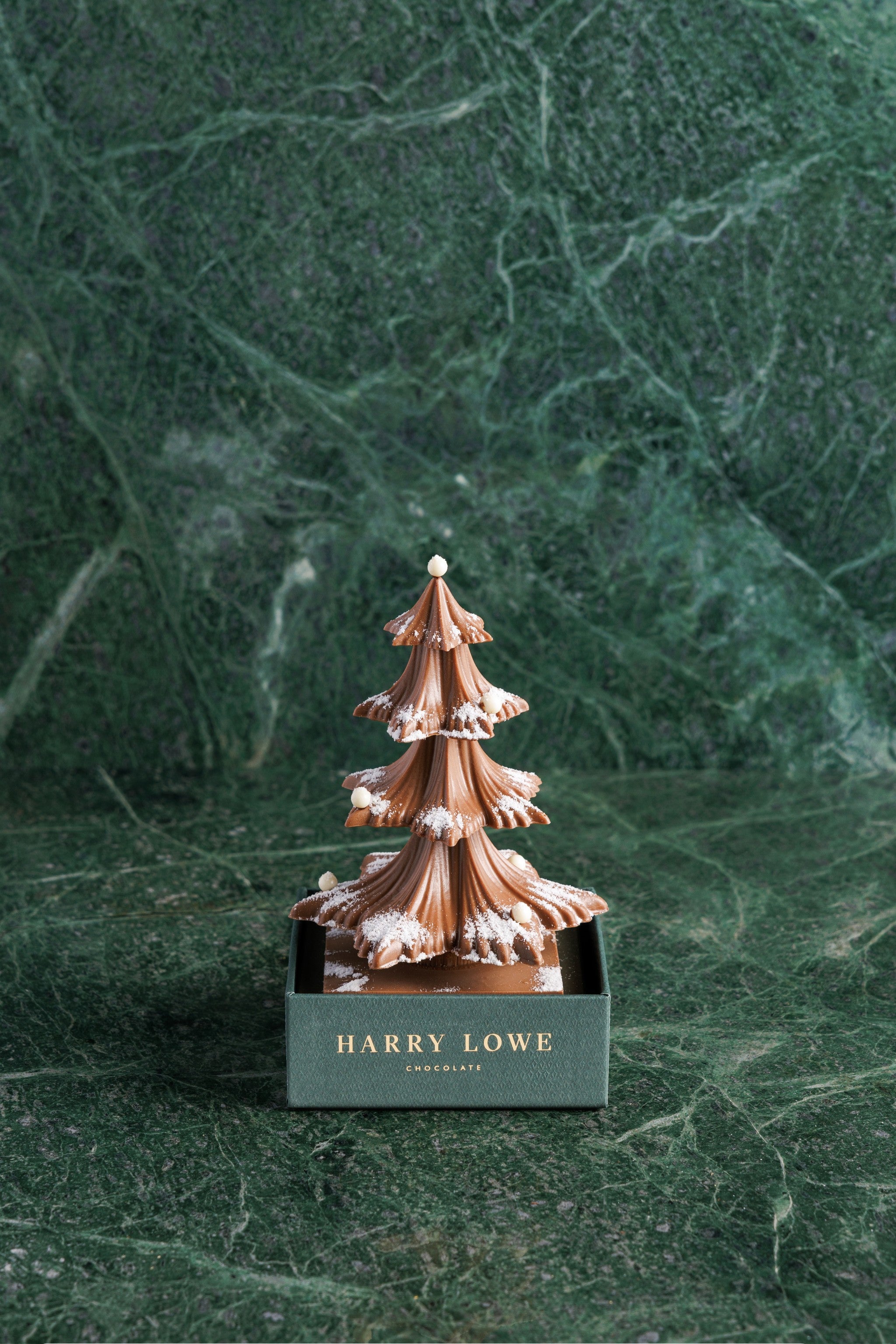 The Christmas Fir Chocolate tree from Harry Lowes is a refined interpretation of the classic Christmas tree, handcrafted in silky milk chocolate and dusted with delicate snowfall-inspired accents. Sculpted in elegant cascading tiers and finished with pearl-like details, this creation blends festive nostalgia with modern gourmet artistry.