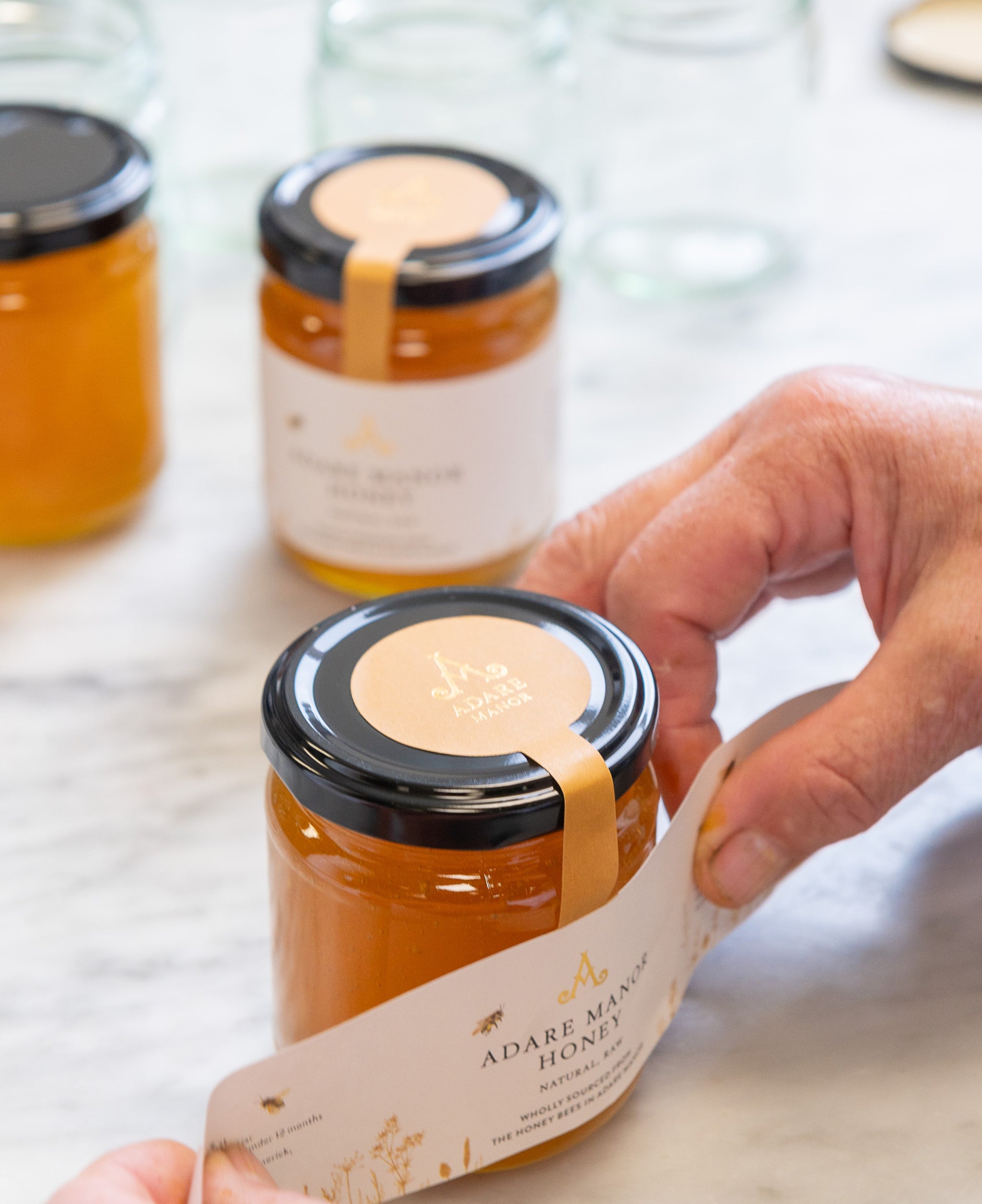 Throughout spring, summer, and autumn, our honeybees will roam the estate foraging for nectar and gathering pollen on their back legs. As they move from flower to flower, they pollinate each plant they visit, ensuring a sufficient harvest. The nectar and pollen they collect and bring back to the hive are used to create 100% pure Irish honey.